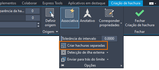 Na faixa de opções Editor de hachura, expanda o painel Opções e selecione Separar hachuras.