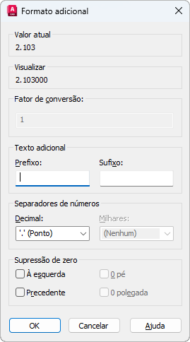 Controla a supressão de zeros à esquerda e à direita e de pés e polegadas que possuem o valor igual a zero.
