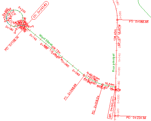 Preste atenção à linha de comando à medida que anota os objetos. Alguns tipos de legenda, tais como vão, inclinação, declividade e profundidade, anotam uma faixa de dados entre dois pontos. Por exemplo, se quiser legendar uma declividade ou profundidade entre dois pontos, você deve especificar os pontos no desenho.
