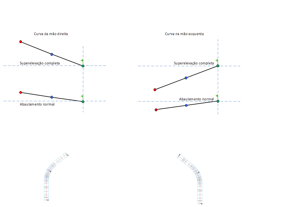 Para obter uma explicação de diagramas de superelevação, consulte Sobre o eixo de superelevação dos métodos de pivô de rotação.