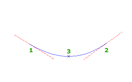 A ilustração mostra uma curva parabólica livre entre as entidades 1 e 2, passando através do ponto 3.