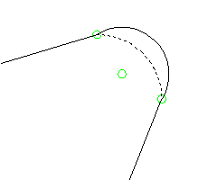 Quando o raio é alterado, se o arco é tangente aos segmentos em ambos os lados, a tangência é mantida. Antes de selecionar OK na caixa de diálogo Editar curva da linha do recurso, o novo arco é exibido. Ao mesmo tempo, o arco existente permanece visível com o realce de traços.