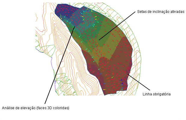 Exibindo análise de elevação de setas de inclinação de superfície
