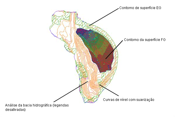 Exibindo limites da superfície, curva de nível, e análise de elevação