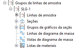 À medida que os grupos de linhas de amostra são criados, eles são exibidos como grupos de linhas de amostra nomeados, como SLG-1, na coleção Grupos de linhas de amostra, que está incluída na coleção do alinhamento principal na árvore Prospector.