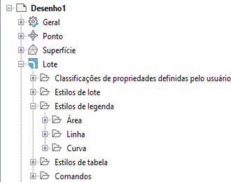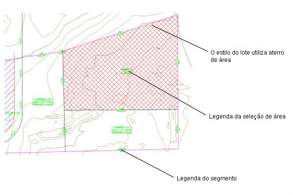 Há diferentes estilos de legenda para áreas de lote e segmentos de lote.