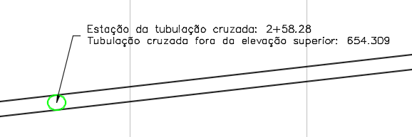 Se a tubulação de pressão cruzada for movida para uma estaca diferente ao longo do alinhamento, as legendas serão atualizadas com as novas informações da estaca e elevação.