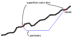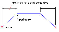 O perímetro pode ser uma imagem aberta ou fechada. O perímetro deve ser uma linha de recurso, uma linha de lote ou o talude resultante de um outro nivelamento.