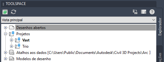 Nota: Um banco de dados do Vault deve ser configurado para uso com o Autodesk Civil 3D antes que ele possa ser acessado na árvore do Prospector.