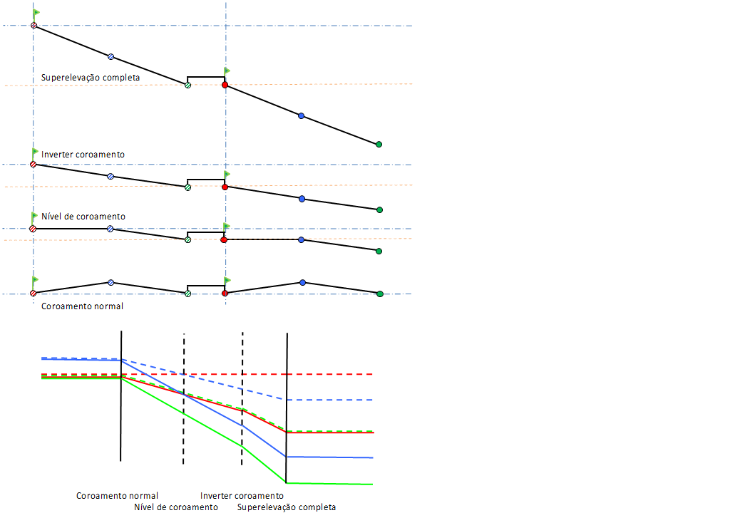 Para obter uma explicação de diagramas de superelevação, consulte Sobre o eixo de superelevação dos métodos de pivô de rotação.