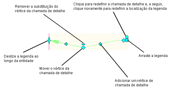 Utilize as alças de vértice de chamada de detalhe para adicionar, mover e redefinir vértices da chamada de detalhe. Você pode adicionar quantos segmentos de chamada de detalhe forem desejado.