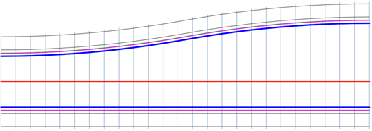 Uma transição parabólica com o clarão que ocorre a partir do início da transição e do nivelamento em direção ao final.