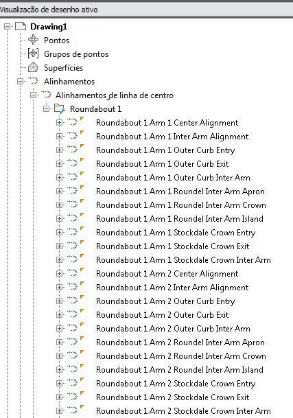 Conforme os objetos de rotatória são criados, eles são exibidos como rotatórias denominadas.