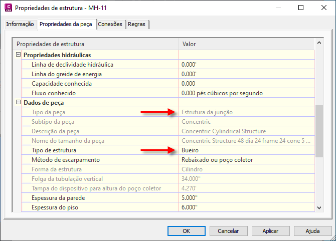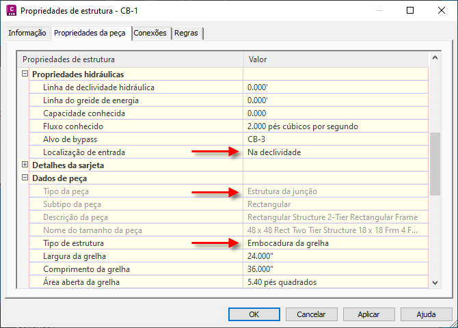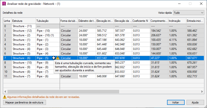 Para obter mais informações, consulte Para mapear parâmetros de estrutura de drenagem para Análise da rede de gravidade.