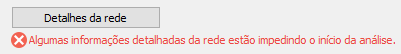 Se não for possível executar o tipo de análise selecionado, será exibida uma mensagem de erro abaixo do botão Detalhes da rede na página Geral da caixa de diálogo Analisar rede de gravidade.