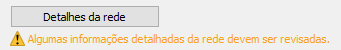 Caso algumas das informações sobre detalhes da rede precisem ser analisadas, será exibida uma mensagem de aviso abaixo do botão Detalhes da rede na página Geral.