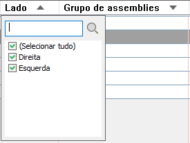 Clique no cabeçalho de uma coluna para exibir uma caixa de pesquisa e caixas de seleção que podem ser usadas para a especificação de critérios de filtro.