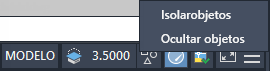 do lado direito do desenho na janela barra de status, então clique em , e selecione objetos que deseja isolar.
