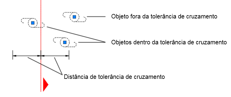 Opções de cruzamentoEspecifica a distância que um objeto deve estar de uma linha de amostra para ser exibido como um cruzamento.