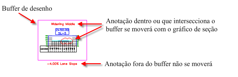 Os elementos de desenho que são adicionados ou cruzam os buffers de desenho do gráfico de seção são vinculados com os gráficos de seção e são movidos com os gráficos de seção se forem movidos.