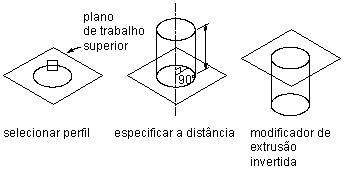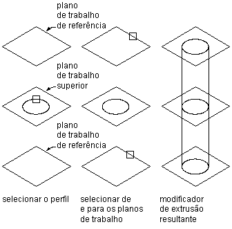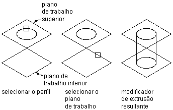 Um plano de extrusão varre um perfil entre o perfil em si e de um plano de trabalho especificado. Se o plano de trabalho for um plano de trabalho de referência, a extrusão é atualizada quando o plano de referência for movido.