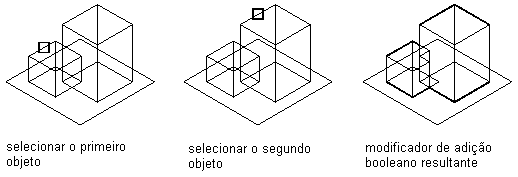 Um modificador Adicionar booleano combina dois recursos para criar um único recurso. Esse modificador assume um conceito básico de adição: a de que geometria dentro de outra geometria, quando adicionada junto, é removida. Esse modificador é útil ao criar modelos de peças que são colocadas em seu desenho exatamente como eles foram criados no modelo.
