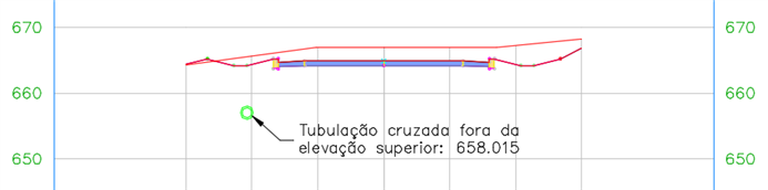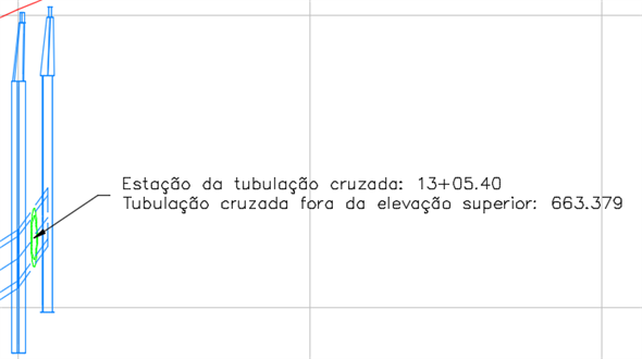 Se a tubulação cruzada for movida para uma estaca diferente ao longo do alinhamento, as legendas serão atualizadas com as novas informações da estaca e elevação.