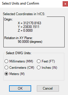 - Na caixa de diálogo Selecionar unidades e confirmar, selecione as unidades de desenho. Clique em OK.