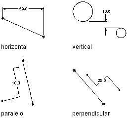 Pode ser definido por pares de geometria de todos os tipos. Defina um valor entre dois recursos. O valor da dimensão da distância não pode ser negativo. Ao adicionar cotas de distância entre duas linhas, é implícito que as linhas sejam paralelas com uma determinada separação.