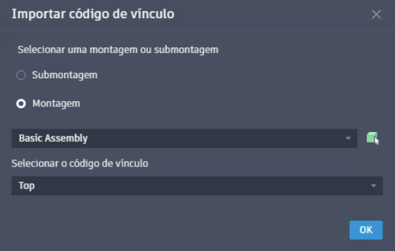 para escolher manualmente uma submontagem ou montagem do desenho. Uma vez feita a seleção, especifique um código de vínculo no menu suspenso.