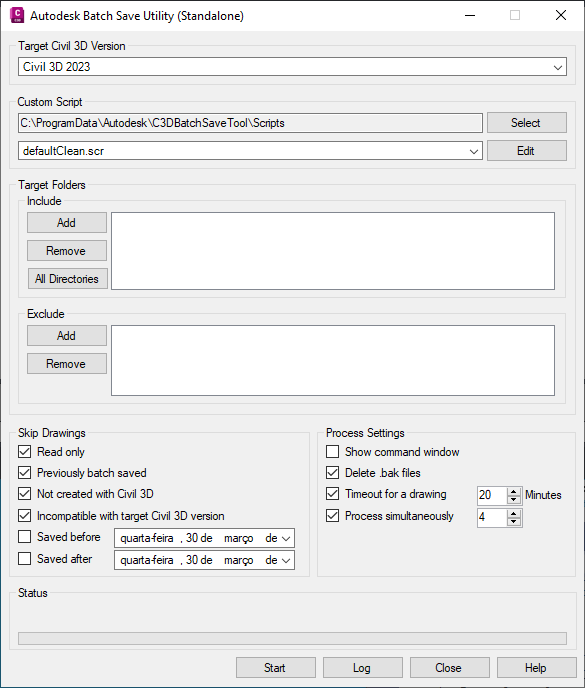 - O Utilitário de salvamento em lote da Autodesk pode ser usado para abrir e salvar desenhos e templates na versão atual ou em uma nova versão do aplicativo. Por exemplo, quando você instala uma nova versão do Autodesk Civil 3D, pode usar esse utilitário para salvar os arquivos na nova versão.