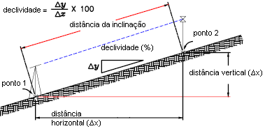 | ponto 1 e ponto 2 | Os dois pontos existentes entre os que se determina a declividade. |
