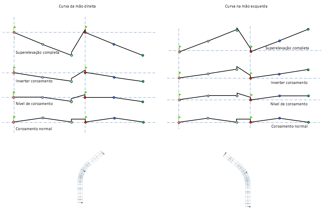Para obter uma explicação de diagramas de superelevação, consulte Sobre o eixo de superelevação dos métodos de pivô de rotação.