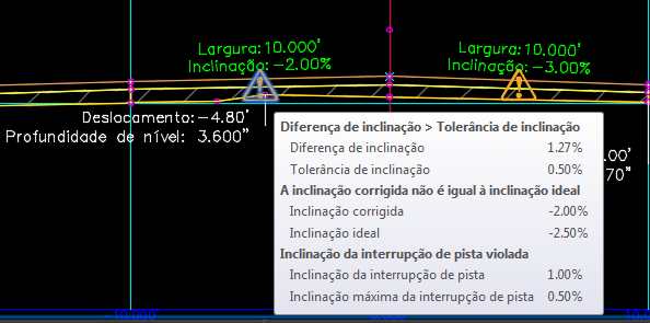 Se Inclinação transversal corrigida não for igual à Inclinação transversal ideal, uma violação será exibida.