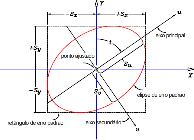 A ilustração a seguir mostra que representam padrão de desvios meio dimensionados da norma sendo que com 68% de probabilidade de erro de retângulo ao redor de cada ponto:
