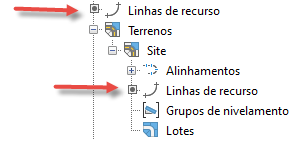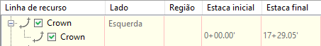 Quando esta linha de recurso for extraída do corredor, o estaqueamento irá iniciar em 0+00 e será medido ao longo da própria linha de recurso ao invés da linha base da região do corredor.