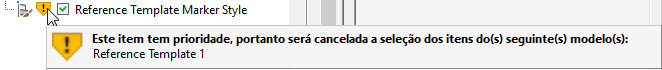 Quando tiver anexado mais de um template a um desenho, você será alertado quando a componentes duplicados nos templates para que possa decidir como resolvê-los. Você pode alterar a ordem de prioridade do template ou escolher fazer referência a um componente de um template de menor prioridade.