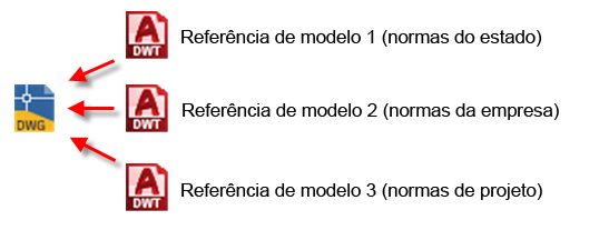 Você pode ter vários templates de referência anexados a um desenho. Por exemplo, você pode ter templates para o estado, a empresa e para as normas de projeto: