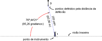 O ponto 3 está localizado ao virar um ângulo com deflexão de 85.2657 a direita da extensão do linha de visibilidade traseira em uma distância de 200. Ângulos e distâncias encontram-se em unidades atuais, a não ser que você digite um sufixo qualificado.