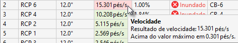 Inundada: a HGL e/ou a EGL estão acima da borda da estrutura.