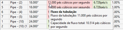 Esta linha será exibida se a opção Redimensionar as tubulações e redefinir as inversões ou Calcular as linhas de declividade de energia e hidráulica estiver selecionada na página Geral.