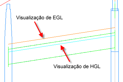 A ilustração a seguir mostra um detalhe das linha EGL e HGL na visualização.