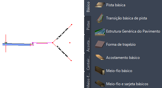 Após a criação de objetos de montagem, você poderá prosseguir com outras tarefas de modelagem de corredor, como a criação de objetos de corredor, linhas do recurso e gráficos da seção.