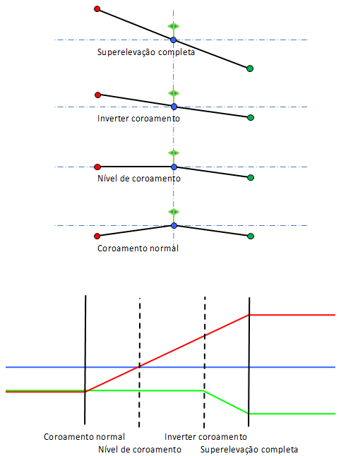 Para obter uma explicação de diagramas de superelevação, consulte Sobre o eixo de superelevação dos métodos de pivô de rotação.