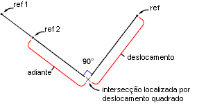 O comando de deslocamento de quadrado exibe a distância à frente e a distância de deslocamento para o ponto de intersecção.