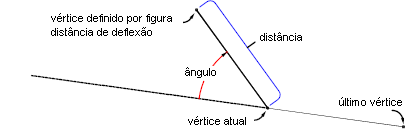 Cria um vértice de figura utilizando um ângulo de deflexão e uma distância. O ângulo do desvio é ativado no sentido horário a partir do azimute atual. Dois ou mais vértices devem existir na imagem para usar este comando.
