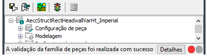 Após a conclusão bem-sucedida destes procedimentos, a peça será validada e a barra de status será atualizada com uma mensagem indicando se a validação da peça foi bem-sucedida.