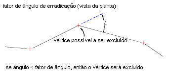 Reduz o número de vértices gerados ao longo da entidade de melhor ajuste. O fator de erradicação ignora os vértices que inclinam menos do que a Tolerância de ângulo. Um ângulo de deflexão maior erradica um número maior de pontos. A Tolerância de ângulo é medida em unidades angulares. A Tolerância de ângulo deve ser menor que a Distância suplementar.