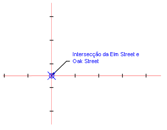 Por exemplo, você pode criar uma legenda de nota com dois componentes de referência, cada qual se refere a um nome de alinhamento. A seguir, é possível inserir a legenda na intersecção de dois alinhamentos e selecionar os alinhamentos de intersecção como dados do objeto.