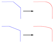 Utilize este comando para converter linhas com suavização de serrilhado para arcos verdadeiros ou para adicionar concordâncias em segmentos retos. Você pode especificar os pontos inicial e final ou definir opções para a geração automática do arco.